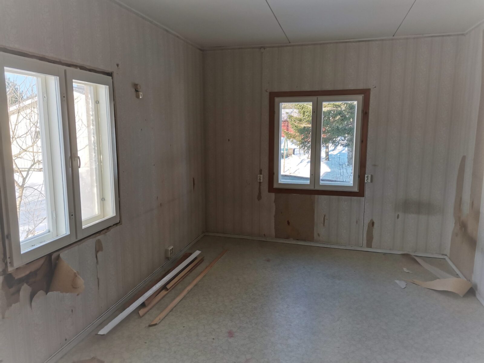 Tämän rakennusprojektin yhtenä keskeisenä osana oli huoneen muuntaminen kahteen osaan. Ulkoseiniin toteutettiin moderni puolipanelointi, joka luo tilaan raikasta ilmettä ja tyylikkyyttä. Seinien yläosaan valittiin hillitty tapetointi. Lattian eristykseen kiinnitettiin erityistä huomiota nykyaikaisen eristemateriaalin avulla. Pinnaksi valittiin nykyaikainen tyylikäs muovimatto, joka viimeistelee tilan ilmeen ja tarjoaa käytännöllisen sekä kestävän lattiaratkaisun.
